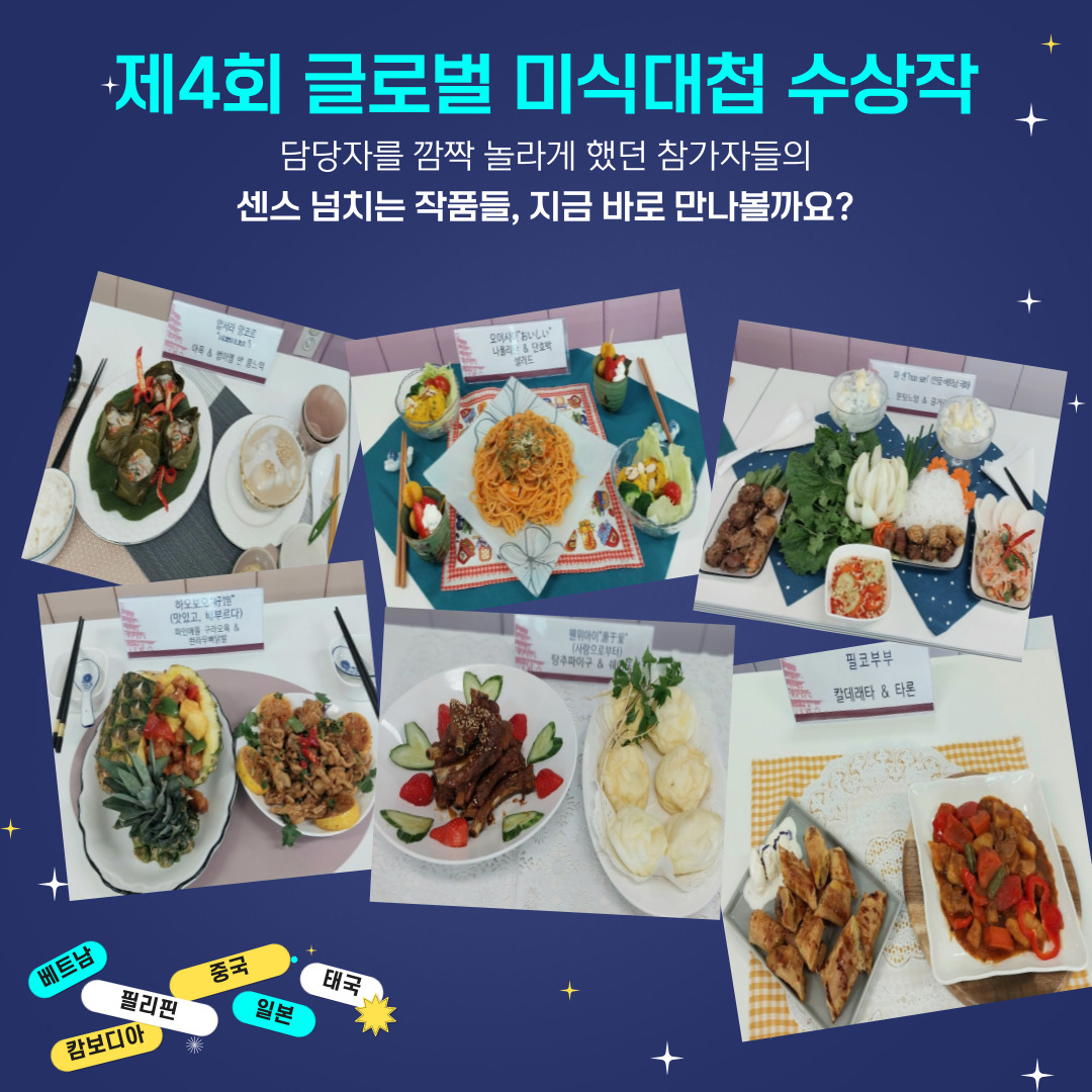 올해 세 번째로 진행된 세계요리 경연대회 “글로벌 미식대첩”6개국 10개팀의 뛰어난 요리솜씨 덕분에 심사위원분들이 너무 고생했다는 소문이...(소근소근)